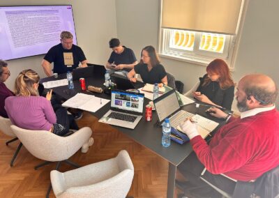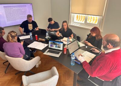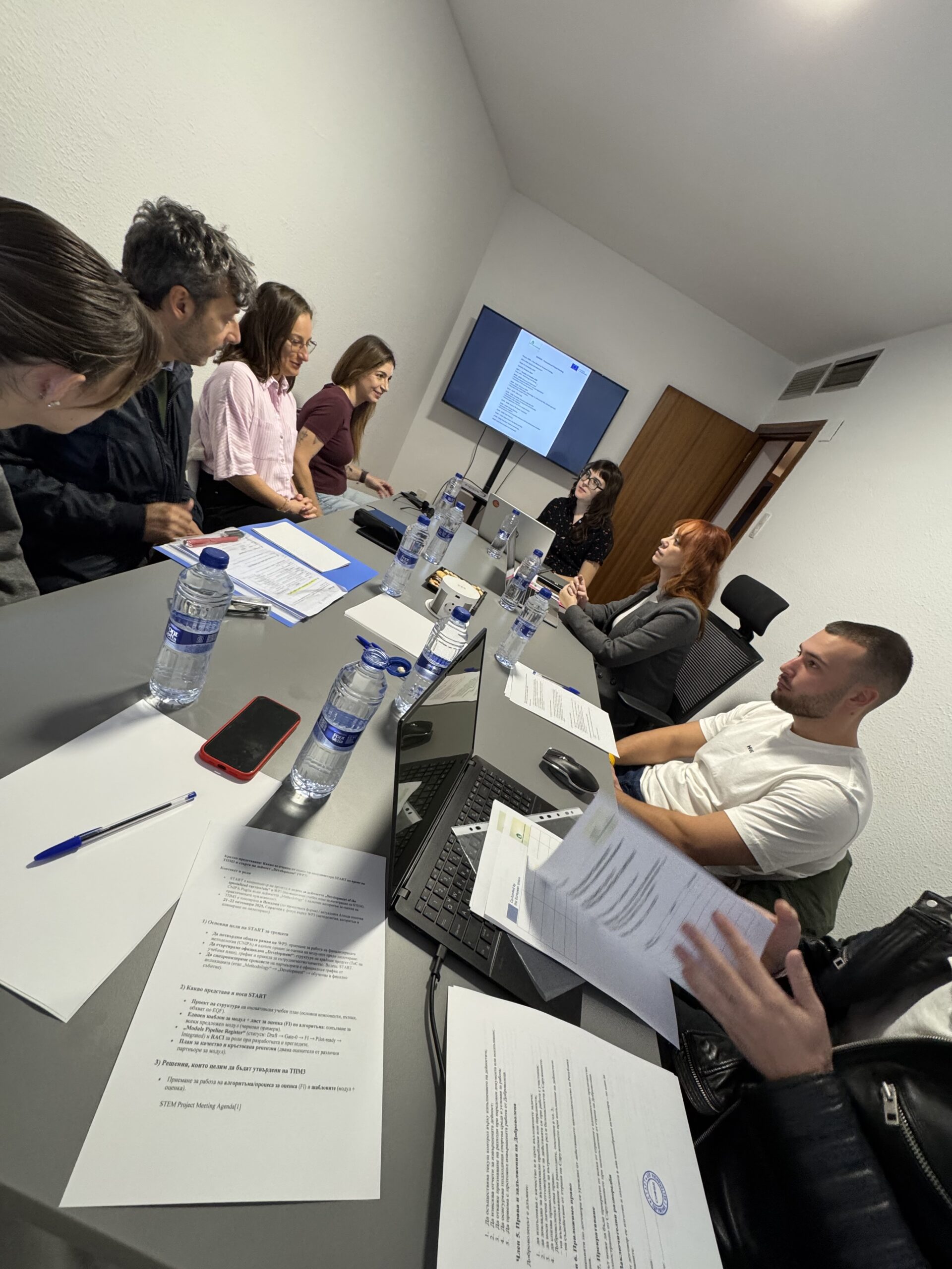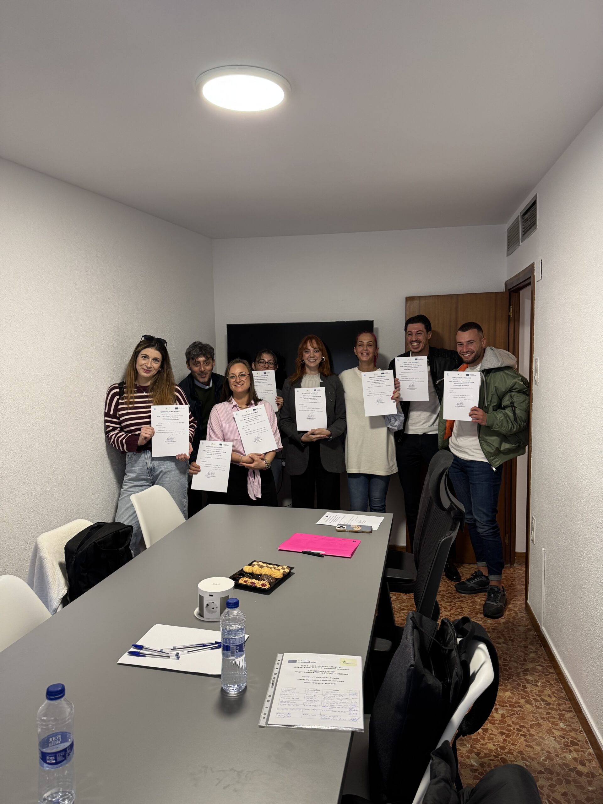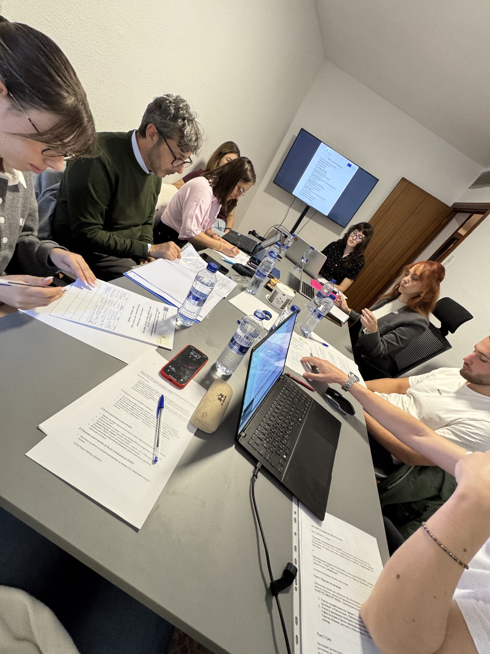 Испания (21.10.2025 – 22.10.2025) Третата среща по проекта „STEM: A new horizon in vocational education“ се проведе на 21–22 октомври 2025 г. в Сарагоса, Испания, като домакин беше INNETICA. На първия ден партньорите представиха целите на срещата и обсъдиха напредъка по WP3, включително Методология v1.1 и как в нея се включват Project-Based Learning и приобщаващ подход. Представен беше и алгоритъмът за оценка на приложимостта (FI), като се обсъди възможност да се засили още повече акцентът върху приобщаването. Взе се решение всеки партньор да разработи по един обучителен модул, които ще бъдат разпределени от START, и модулите да се одобряват по FI с резултат над 85 точки. Уточни се, че след финализиране, преглед и превод на наръчника ще се проведат обучителни работилници за учители във всяка държава (по 12 учители), след което ще се събере обратна връзка и ще се изготви финален оценителен доклад за заключителното събитие. На втория ден беше прегледана стратегията за разпространение и видимост, планирани бяха бъдещи публикации и беше договорено финалното събитие за разпространение да е в София (19–21 февруари 2026 г.). Срещата приключи с обобщение на договореностите и раздаване на сертификати за участие.
