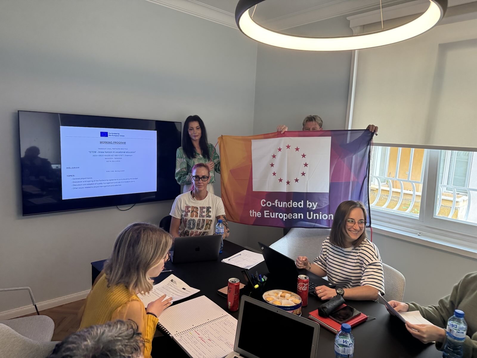 България (16.05.2024 – 19.05.2024) Първата транснационална среща по проекта „STEM – A new horizon in vocational education“ в София, беше стартова партньорска среща за организацията на проекта. Участниците от България, Испания, Полша и Италия се координираха по управлението на проекта, подписаха партньорските споразумения и уточниха разпределението на бюджета. Приети бяха подходи за управление на качеството и минимизиране на риска. Планира се и стартира WP2 (Анализ) с договорена рамка на съдържанието (успешни практики, проблеми при STEM интеграция и анализ на учебните планове в целевите институции). Обсъдени бяха още планът за разпространение и комуникационната стратегия, както и предварително планиране на следващите дейности по WP3 (учебни програми) и WP5 (обучения).